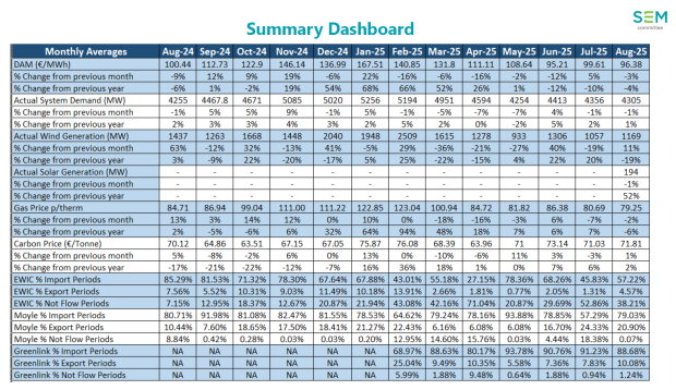 Our Market Monitoring Unit produce a monthly report detailing useful information on the performance of the market. The SEM dashboard provides a snapshot of key prices and outcomes in the SEM.